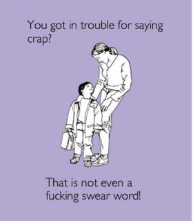 So yes, I grew up with hearing cussing and sharing a bathroom. I saw my parents naked and on the toilet. We were not allowed to swear (rightly so), but I never knew that "crap" was in the Swearing Lexicon.